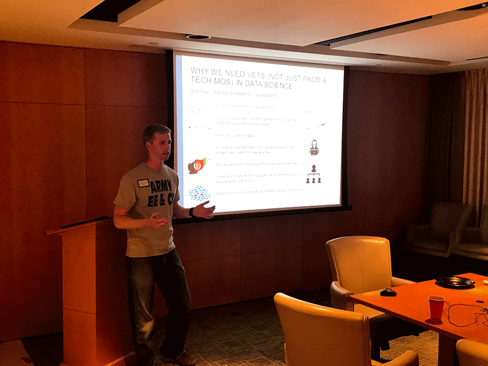 Kristof Ladny gave a great talk on his path from Infantry to Data Science (by way of consulting). You can really see that great consulting training in his open yet firm posture and arm movements.